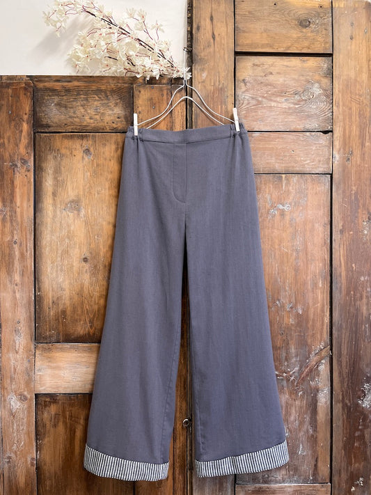 Çizgili Paça Detay Keten Pantolon