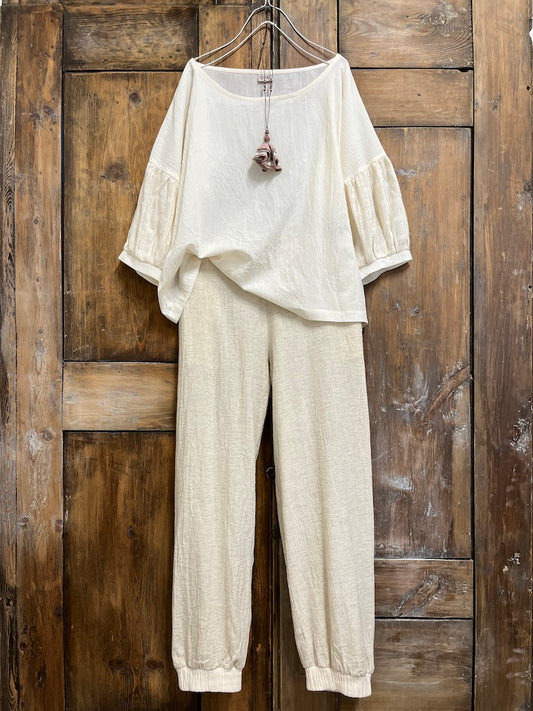 Dokuma Detay Keten Pantolon