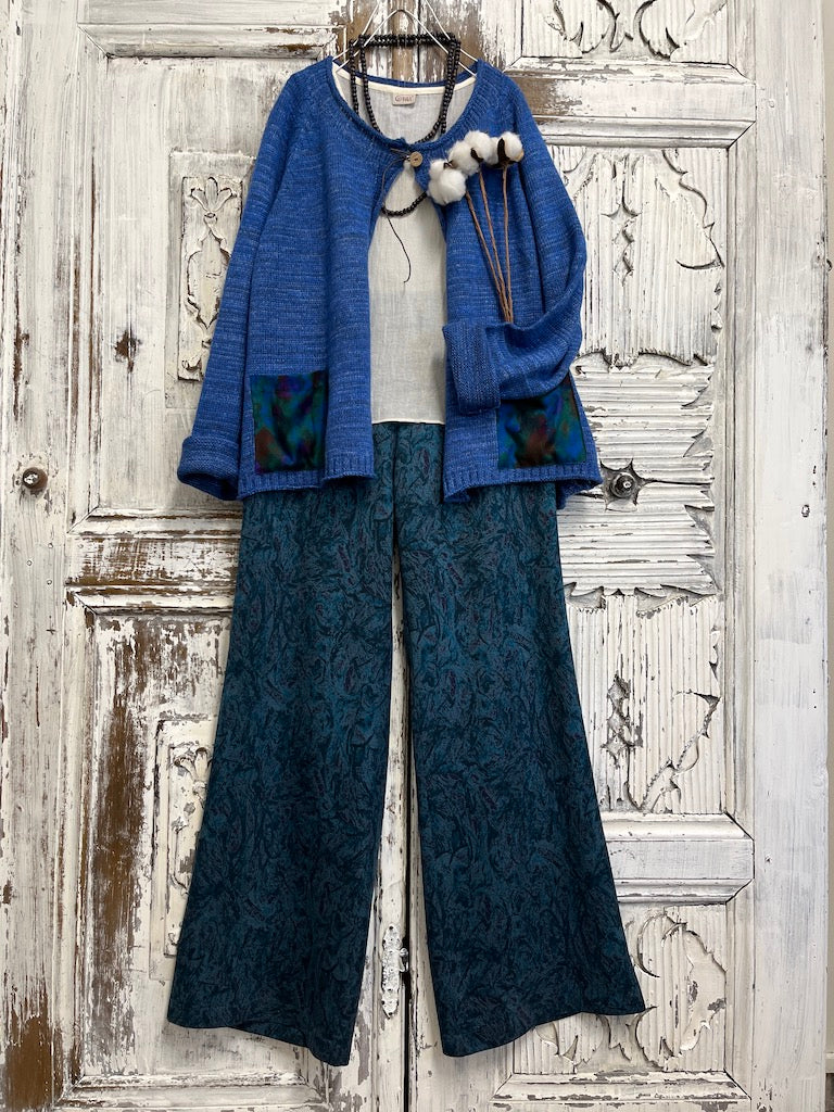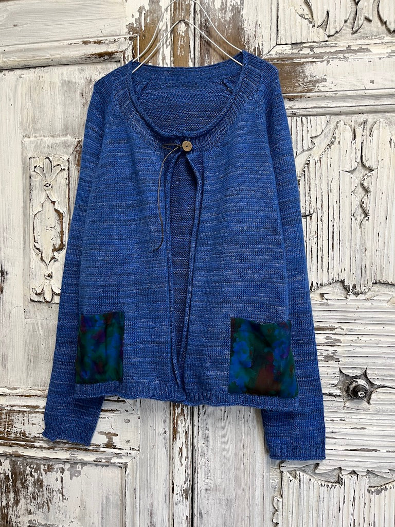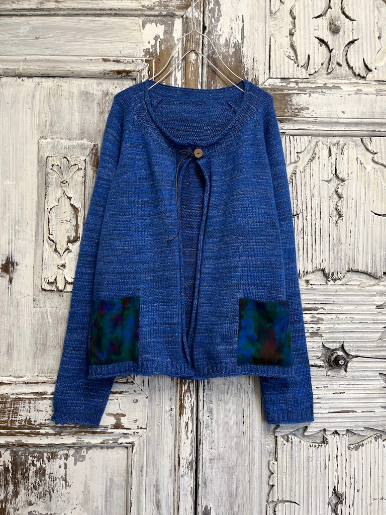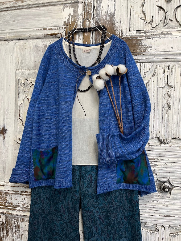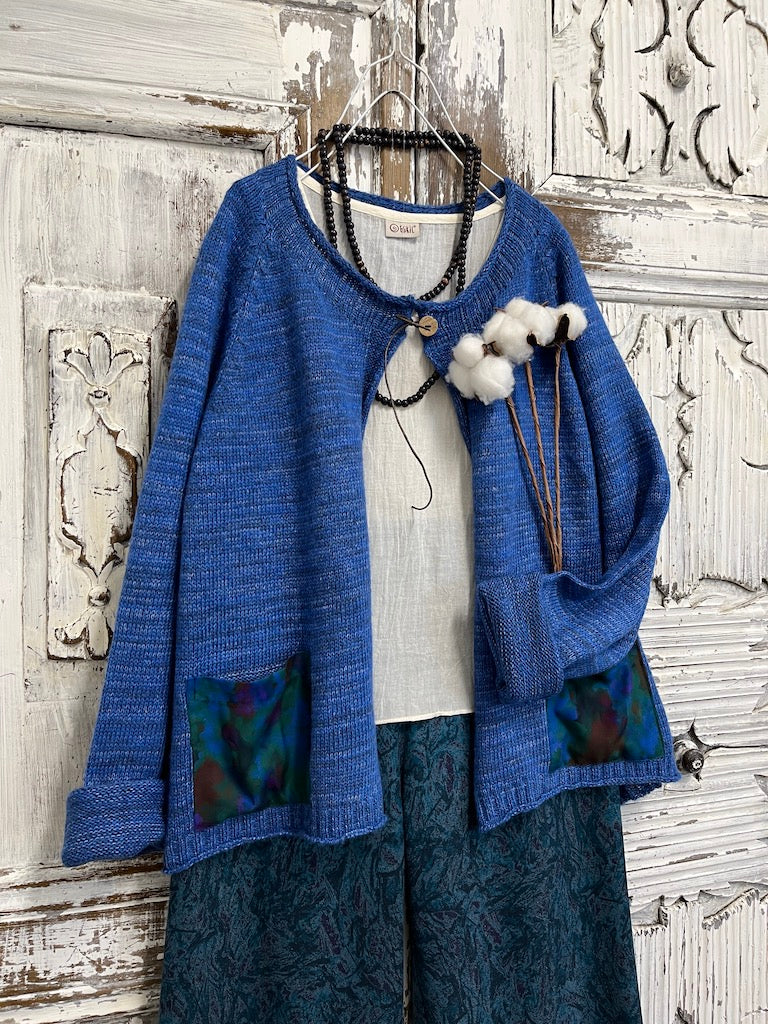 İnce yün ve moher dokusunun hafifliğiyle tasarlanan bu hırka, yumuşak yapısı ve rahat formuyla günlük kullanıma konforlu bir eşlik sunar. Ön ceplerinde kullanılan desenli, farklı dokudaki kumaş detayları hırkaya özgün bir karakter kazandırır. Sade görünümünü bu küçük ama etkili detaylarla zenginleştiren tasarım, kat kat giyime uygun ve zamansız bir parça olarak öne çıkar.