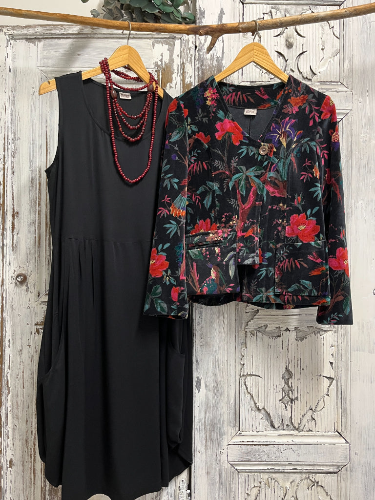 Bu siyah jile elbise, sade formu ve geniş cep detaylarıyla işlevsel bir şıklık sunuyor. Rahat kesimi sayesinde gün boyu konfor sağlar; farklı parçalarla katmanlanarak dört mevsim kullanılabilir. Minimal çizgileriyle zarif, sade ve özgür bir görünüm yaratır.