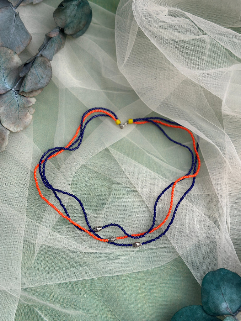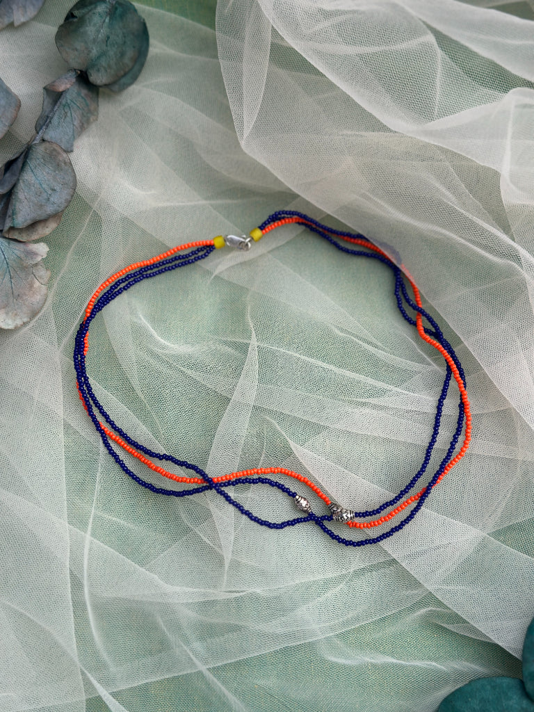 Canlı renklerdeki minik boncukların bir araya gelmesiyle oluşturulan bu kolye, ince ve zarif duruşuyla günlük stile hafif bir ışıltı katar.