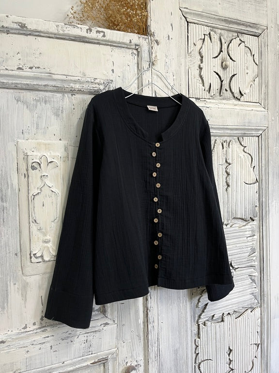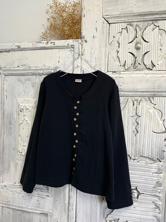 Sık Düğme Siyah Bluz