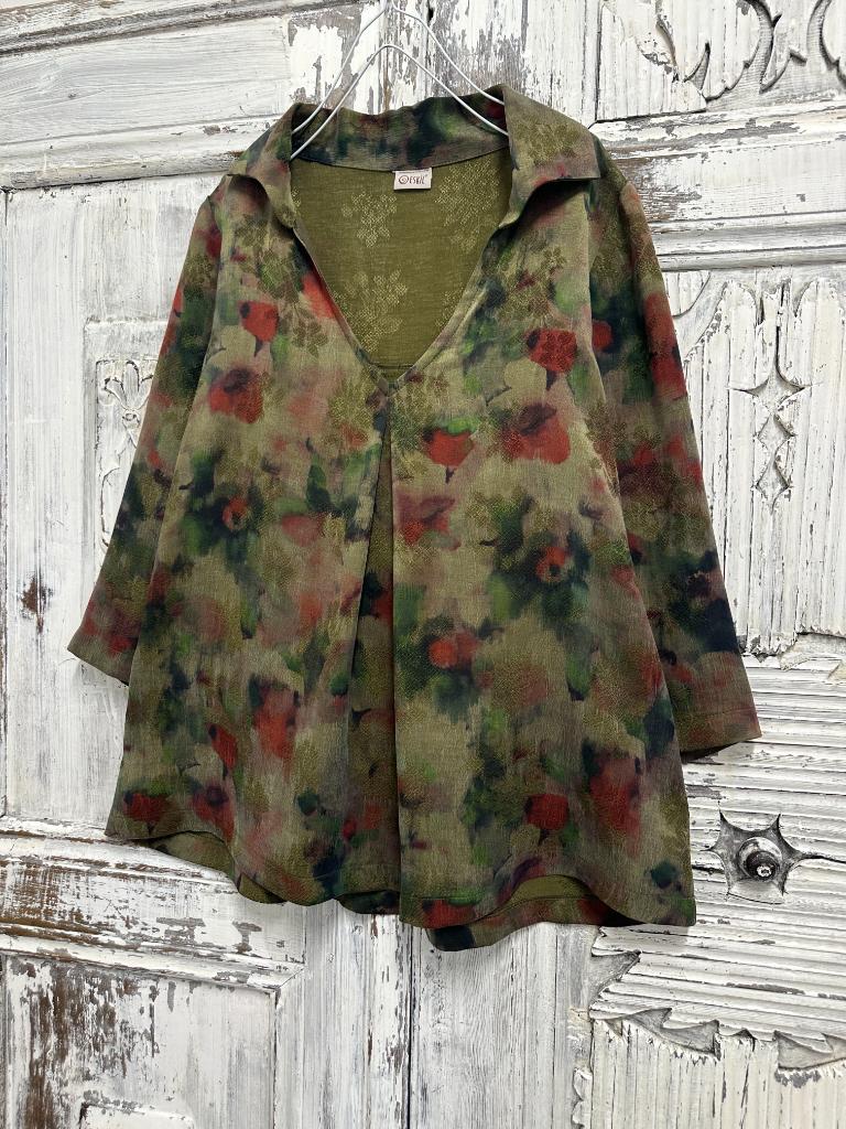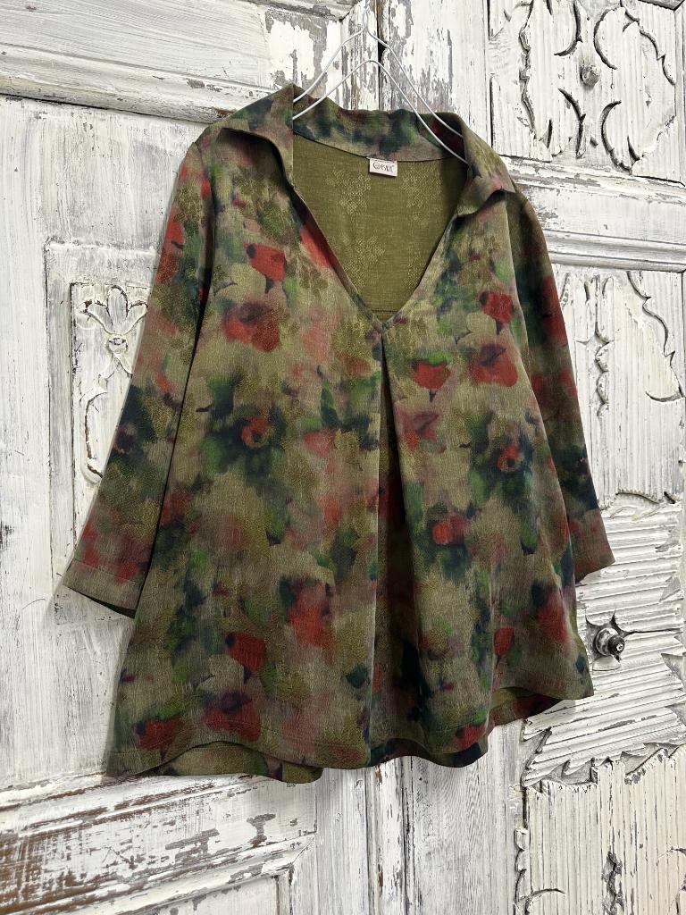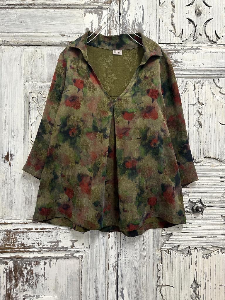 Yumuşak dokusuyla öne çıkan vegan ipek kumaştan tasarlanan bu bluz, zarif V yaka kesimi ve suluboya tablolarını andıran desenleriyle eşsiz bir görünüm sunuyor. Akıcı formu vücuda zarifçe otururken, doğal parlaklığıyla sade kombinleri dahi sofistike bir şıklığa dönüştürüyor. Hem günlük şıklıkta hem de özel davetlerde dikkat çeken bir parça.